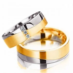 Par de Aliança em Ouro Amarelo & Branco 18k e Diamantes, 5mm